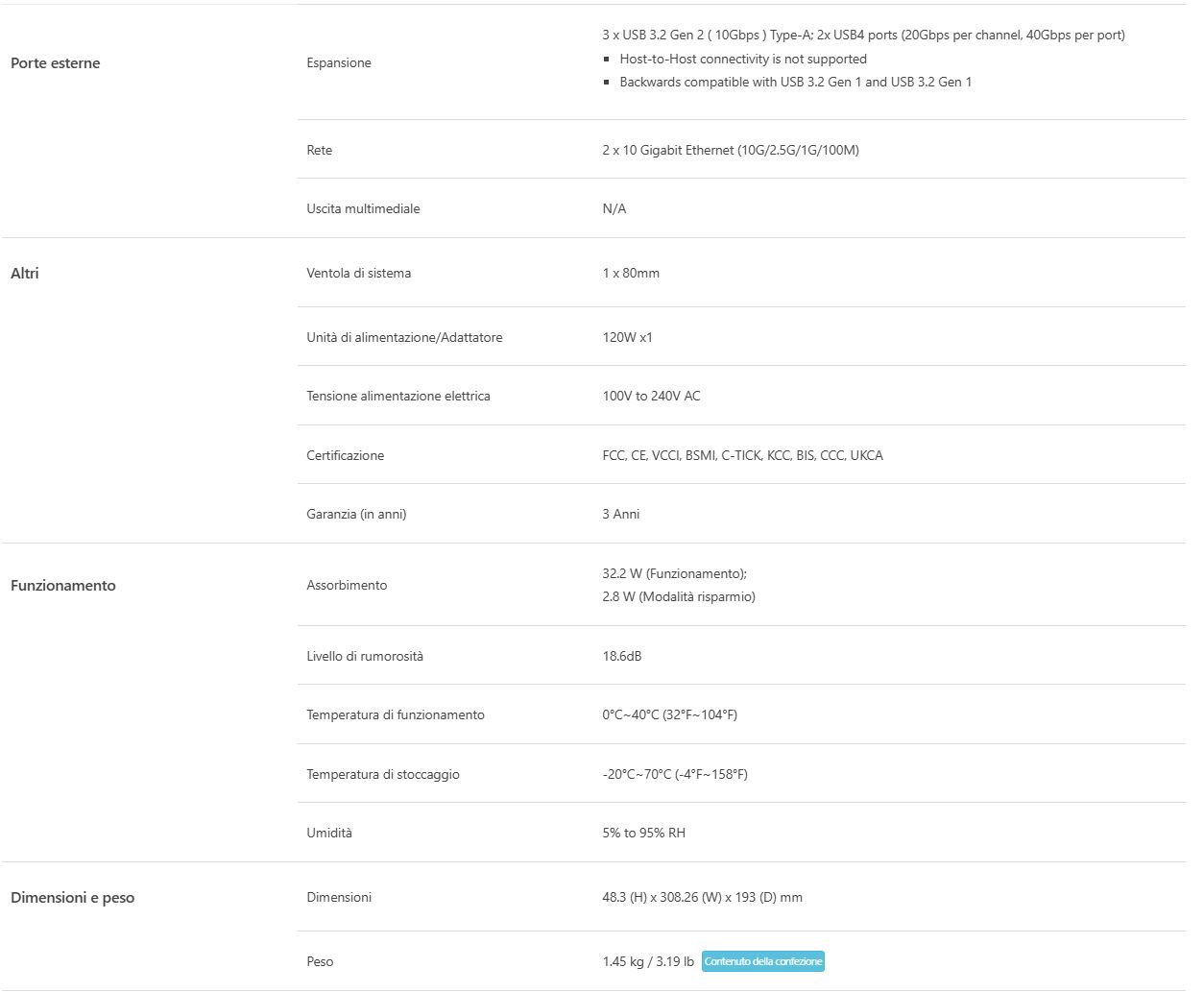 Aprendo la confezione con un’apertura verso l’alto troviamo il NAS e il relativo bundle ottimamente protetti e disposti. Sembra quasi di acquistare un notebook di una certa fascia.